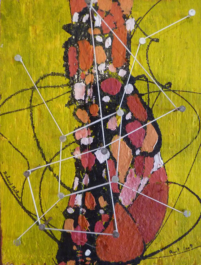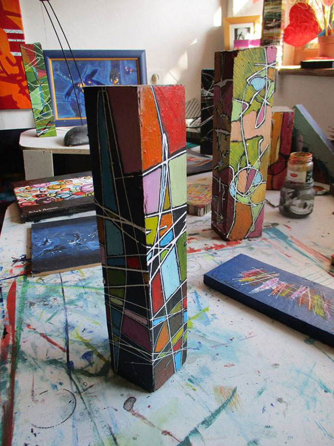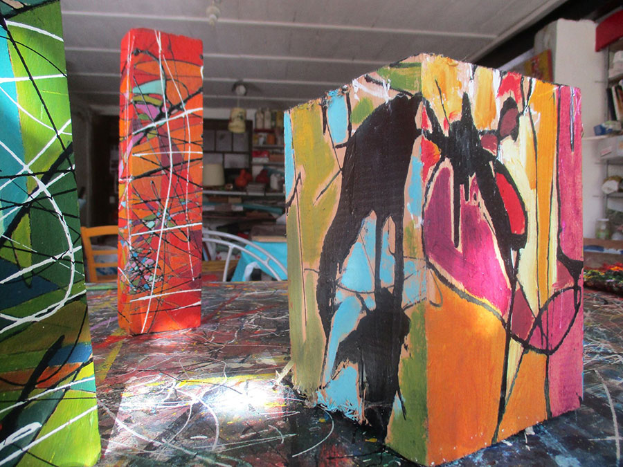 Sur ce bout de bois de la peinture étalée, des formes, des compositions,
